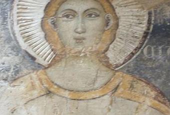 Illustration: photo prise dans une église de la citadelle de Rhodes. Elle représente Sainte Lucie (XIVe siècle, école toscane)