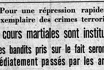 Les cours martiales, bien que tout à fait officielles, se réunissent sans publicité, en dehors des lieux où est traditionnellement rendue la justice, et leurs " juges " sont anonymes. Le processus répressif se veut rapide, de l'arrestation à l'exécution. Ne sont rendus publiques , aucune information sur l'identité des condamnés, ou la nature des faits qui leur sont reprochés...
