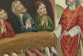 Philippe Walter, dans son excellent Mythologie chrétienne, Fêtes, rites et mythes du Moyen Age (Imago, 2005), nous donne la raison de ce doigt miraculeux : Nicolas était évêque de Myre, en Asie Mineure*, or mire, en ancien français, signifie aussi "médecin". Mieux, le Dictionnaire de l'ancien français de Tobler-Lommatzsch nous apprend que que l'annulaire porte le nom de doit mire. " La désignation est ancienne, précise Philippe Walter, puisque l'auteur latin Macrobe parle lui aussi de digitus médicinalis. Comme la relique guérisseuse de l'évêque de Myre était un doigt du saint, on peut supposer qu'il s'agissait bien de ce doigt mire." (p. 75)