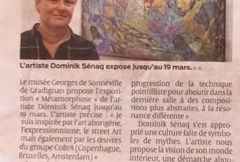 Un nouvel article sur la presse régionale SUD OUST du 13/02/2023 concernant mon exposition au Musée Georges de Sonneville 33170 Gradignan: