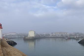 Fin de journée et fin de vacances sur l’île d’Oléron. Des vacances courtes parce-qu’il y avait des cours à préparer, des copies à mettre au feu et des maîtresses au milieu en manif samedi dernier. Mais c’est toujours ça de pris. L’air de la mer, le rythme des vagues, l’odeur des algues. Tout va bien. Fin d’après-midi, donc. Les grincheux diraient qu’il ne fait pas beau et resteraient sottement embastillés dans leur cahute. Les autres profitent du moment. La brume, que dis-je, le brouillard ! empêche de voir la nouvelle criée depuis l’emplacement de l’ancienne (les habitués comprendront). Mais la lumière est d’une douceur extrême et c’est juste joli.