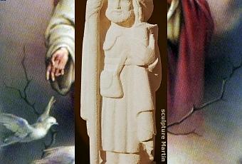 St Jacques le majeur était fils de Zébédée et frère de saint Jean. Ils étaient pêcheurs sur le lac de Tibériade, compagnons de Simon et d'André. Ils étaient dans la barque de leur père et réparaient les filets quand Jésus, passant sur le rivage, leur dit :"Suivez-moi." Ils le suivirent. Avec Pierre, Jacques et Jean seront les plus proches des apôtres de Jésus. Ils sont à la Transfiguration, ils entrent auprès de la petite fille de Jaïre. Ils seront au jardin des Oliviers. Jacques, comme Jean, désire la première place auprès du Maître (Marc 10. 37). Il y gagnera l'annonce de son martyre: "Ma coupe, vous la boirez." De même quand il veut faire tomber le feu du ciel sur un village inhospitalier, ce fils du tonnerre s'attire une réprimande. Jésus ne ménage pas ceux à qui il accorde sa confiance privilégiée.